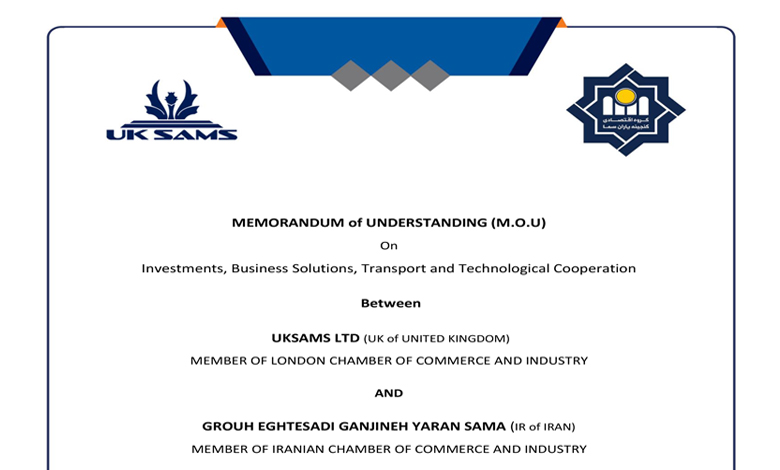 انعقاد تفاهم نامه رسمی سما با کمپانی UKSAMS انگلیس در زمینه های مختلف اقتصادی و بین المللی و همچنین حمایت از منافع مشترک همدیگر در کشورهای مطبوع خود .