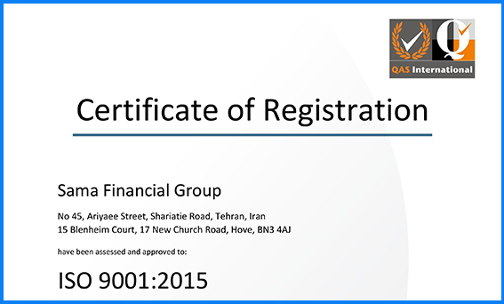 هلدینگ بین المللی سما تحت نام SAMA FINANCIAL GROUP  مفتخر است اعلام نماید ، پس از مکاتبات ، رایزنی ها و تلاش های بسیار زیاد تیم کارشناسان داخلی و بین المللی سما و همچنین مشکلات فراوانی که شرایط تحریم ها بر اقتصاد ایران حکمفرماست ، موفق به دریافت گواهینامه بین المللی ISO9001:2015 به شماره ثبت CA15675 از کمپانی معتبر IMSM در کشور انگلستان شود.