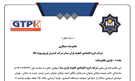 انعقاد تفاهم نامه همکاری بین گروه اقتصادی گنجینه یاران سما با شرکت گسترش توزیع پیوند کالا در راستای اهداف زیر: