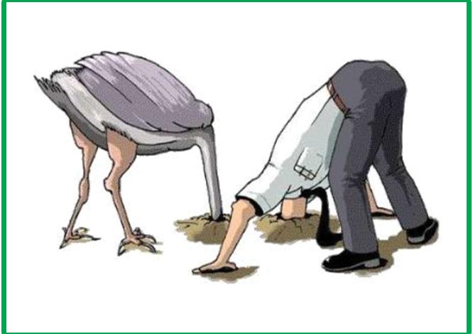 افسانه چنین می گوید: شتر مرغ ها برای جلوگیری از خطر سر خود را در شن پنهان می کنند، اما در اقتصاد شناختی به رفتار سرمایه گذاران در راستای ایجاد مانع در زمان اخبار منفی اطلاق می شود. به زبان ساده تر انکار اخبار منفی است. گالای و سید استادان دانشگاه اورشلیم در زمـان بـررسـی رفتـار سـرمـایـه گـذاران بـازار بورس بـه ایـن نتیجـه دست یافتنـد، که در زمانیکه سرمایه گذار بازار را در مـوقعیـت بـد ارزش گـذاری مـی کنـد، از بـررسی اخبـار بـازار و موقعیـت سرمـایـه خود دوری می کنند.