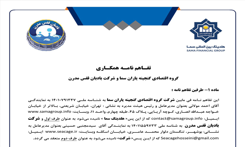 به گزارش پایگاه خبری سما ؛ تفاهم نامه همکاری سما با شرکت بادبان قفس مدرن منعقد گردید .