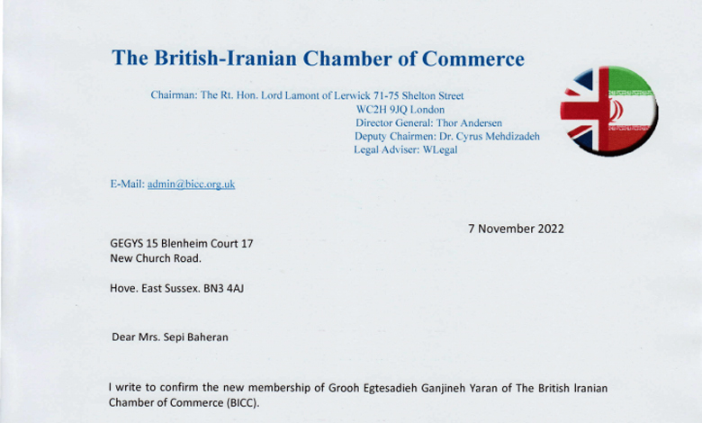 با کمال خرسندی اعلام میداریم ، شرکت گروه اقتصادی گنجینه یاران سما جهت گسترش تبادلات تجاری و ایجاد بستری امن برای تجارت بین المللی به عضویت اتاق بازرگانی ایران – انگلیس درآمد .